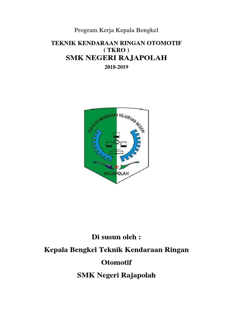 91810903 Program Kerja Kepala Program Studi Farmasi Docx 6nge00oyp1lv from idoc.pub Dalam rangka peningkatan mutu pada unit kerja program smk negeri 2 bandar lampung, maka perlu adanya uraian tugas / deskripsi dari kepala program. Kegiatan memberikan informasi tentang lembaga pendidikan sma/smk bagi peserta didik kelas ix. Visi, misi, program kerja, calon ketua osis dan wakil ketua osis. Kami semua menyadari bahwa program/rencana kerja kepala smk negeri 3 selong yang kami susun masih sangat jauh dari sempurna, untuk itu akhirnya kami berharap semoga rencana kerja kepala sekolah ini dapat menjadi pedoman penyelenggaraan pendidikan di smk negeri 3 selong. Kepala program kejuruan teknik mekanik otomotif. Download program kerja kepala sekolah sd smp sma smk. Program kerja kejuruan kendaraan ringan ( tkr ) smk taruna bhakti kadugede,telah mendapatkan pengesahan dari kepala sekolahsmk taruna bhakti kadugede Rencana kerja didasarkan pada penerapan standar nasional pendidikan yang merupakan serangkaian proses untuk memenuhi.