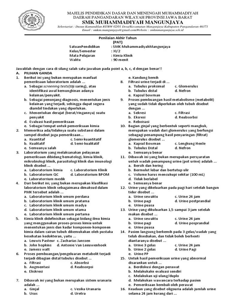 This document was uploaded by user . Persiapan ujian kenaikan kelas ( ukk) Inilah pembahasan soal dan jawaban latihan uas dan pas untuk siswa kelas 10 sma pelajaran kimia. Halo adik adik yang baik, nah pada kesempatan yang baik ini kakak ingin membagikan beberapa contoh soal uts kimia untuk adik adik kelas x sma/ma yang . Download soal kimia kelas x beserta jawabannya.